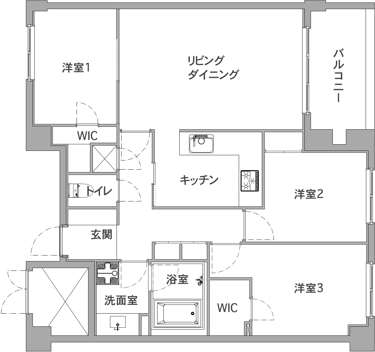 <奥さま>ありすぎて…強いて言うなら、広くて視線が抜けるリビングがすごく好きですね。マンションだけどマンションぽくないし、部屋のほとんど全てを見渡せるので、綺麗にしようというモチベーションを維持することができます。SIC、WICと収納するところをまとめたので片づけも楽だし、来た人に「そこに全部入ってるの?」と驚かれます。 <ご主人>リビングとキッチンの繋がり方が気に入っています。お互いが近くに感じられて、一人じゃない感じ。