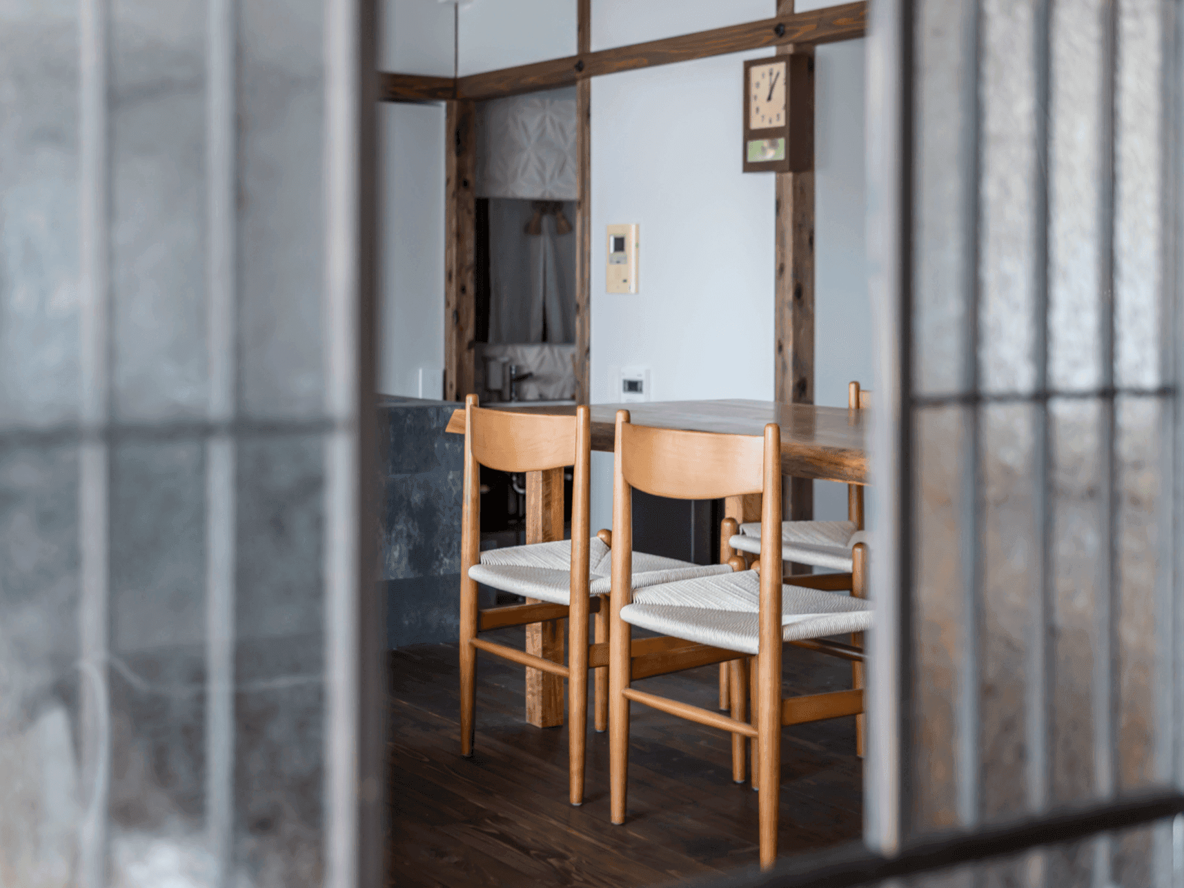 <ご主人>担当してくださったプランナーさんとは歳が近いというのとフランクに接してくださったので、自分たちのやりたいことを伝えやすかったです。いろんな提案してくれたので楽しんで家作りができました。 <奥さま>サクサク進んだよね。最初に出してもらったこのプランがドンピシャだったし、停滞する感じもなかった。梁の継ぎ目を隠す「釘隠し」とか、寝室の引き戸や間仕切りに採用した「蔵戸」とか、おもしろい提案をしてくださって自分たちで探す楽しみもありました。 <ご主人>あとはスケルトンになって生じたイレギュラーにも、フォローが早くて進めやすかったよね。 Qリクエストしたことは? <奥さま>「寺に住みたい」というリクエストをしました。難しそうなテーマを実現させてくださいました。 <ご主人>プランに入る前にゼロリノベさんに提出するシートで、大切にしているものとか新居に持っていくものを棚卸ししたおかげでブレずに進められたのもあるんじゃない? <奥さま>迷ってもあのシートに立ち戻って軌道修正することができたよね。